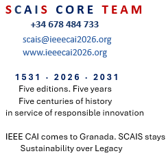 SCAIS is guided by an independent and high-level Scientific & Decision AI Committee, composed of outstanding members from UGR and IEEE, led by Prof Enrique Herrera de Viedma, CAI General Co-Chair and Vice-Rector for Research and Knowledge Transfer at the UGR and framed within a wider international ecosystem with reach across five continents. It ensures scientific rigor, evaluation integrity, and a globally informed perspective.